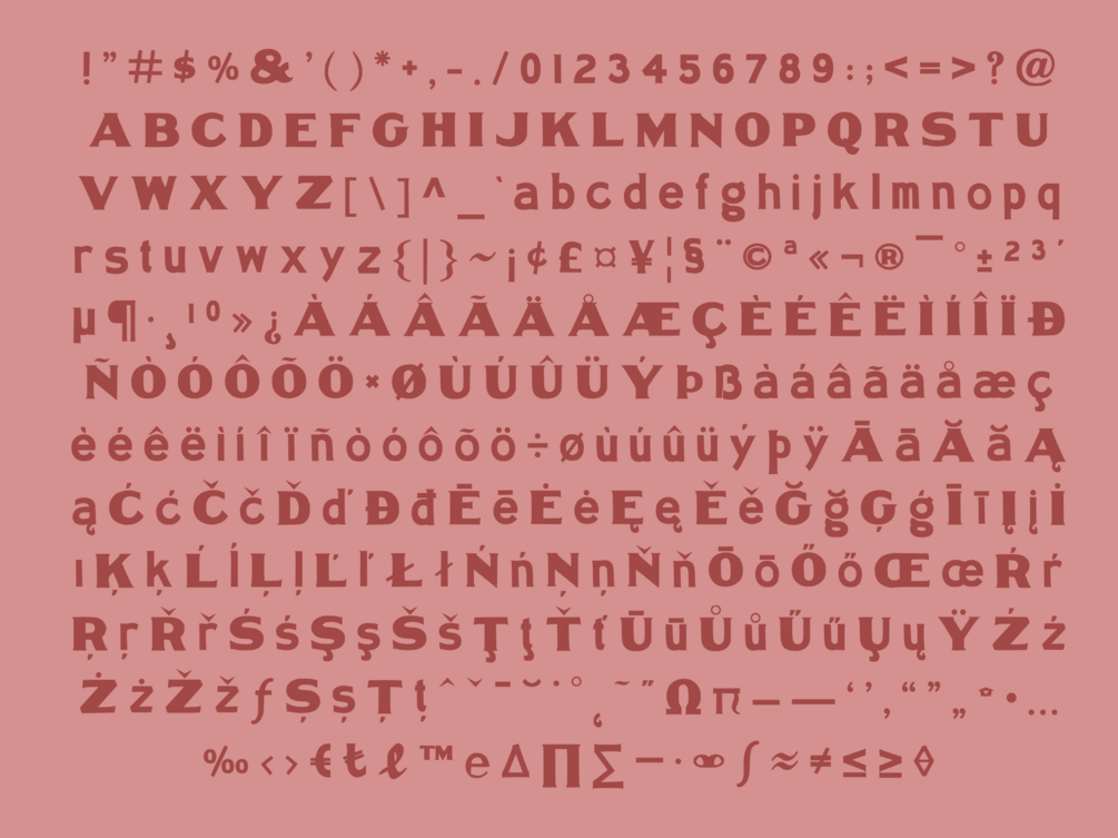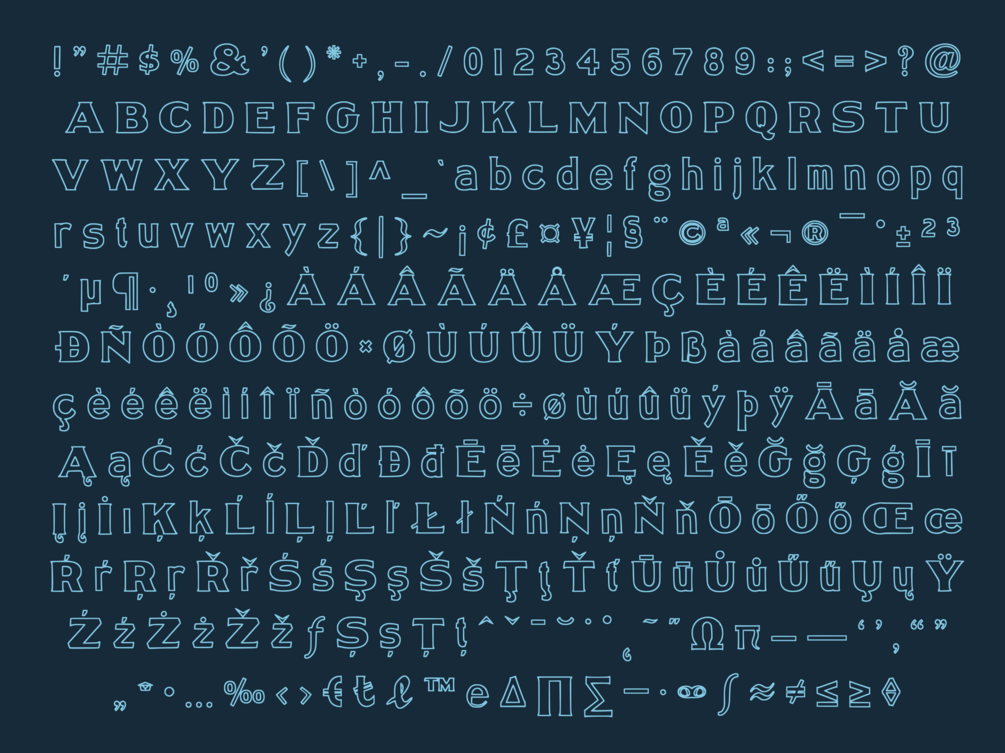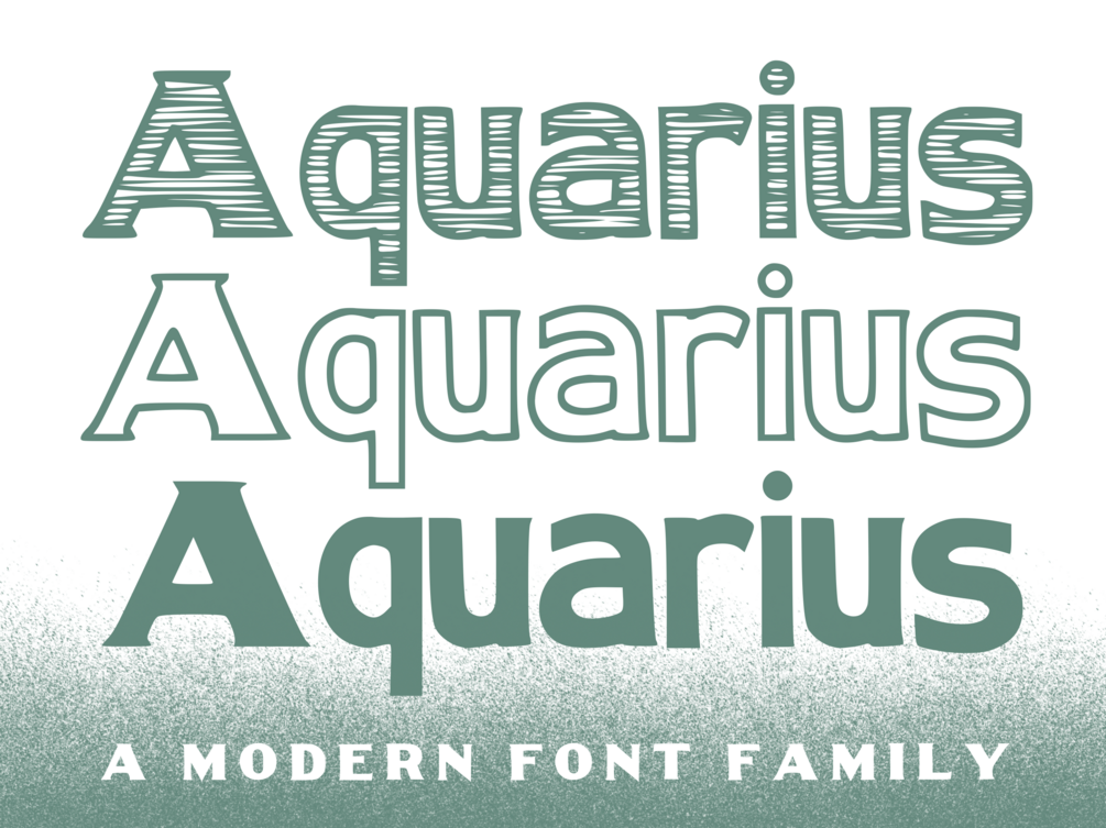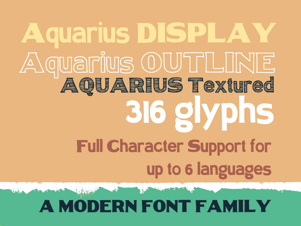 Aquarius is a modern slab serif font family made up of 3 typefaces featuring an outline, textured, and regular version. There are 316 glyphs in each font, making it compatible for use with multiple languages.