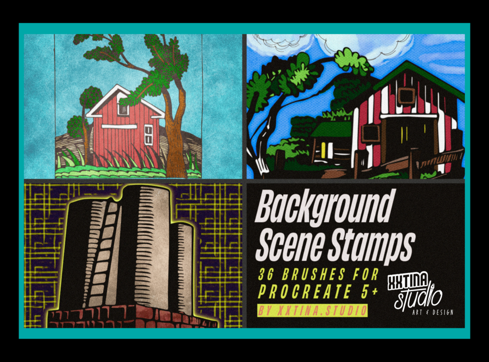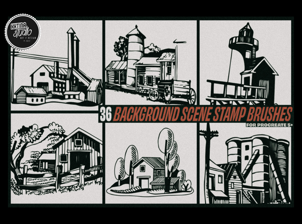 - Premium (Full Version): Includes 36 background/scene stamp brushes for Procreate 5+ $10