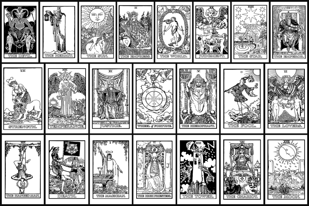 — Includes 22 printable coloring sheets in total (all 22 major arcana cards presented)